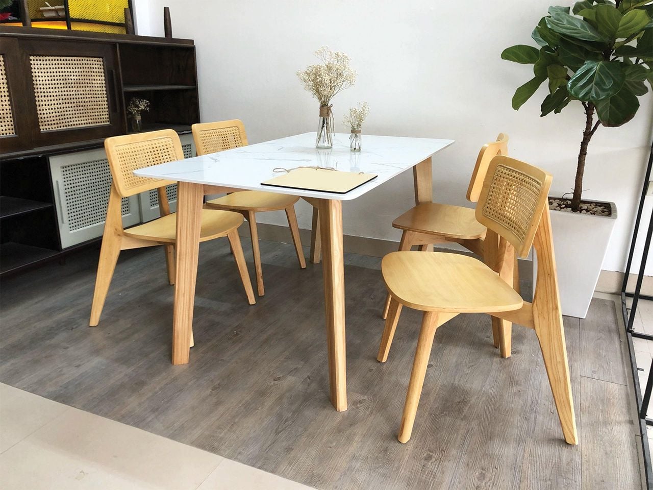 | Chất liệu | Chân gỗ tần bì. Mặt đá Ceramic |