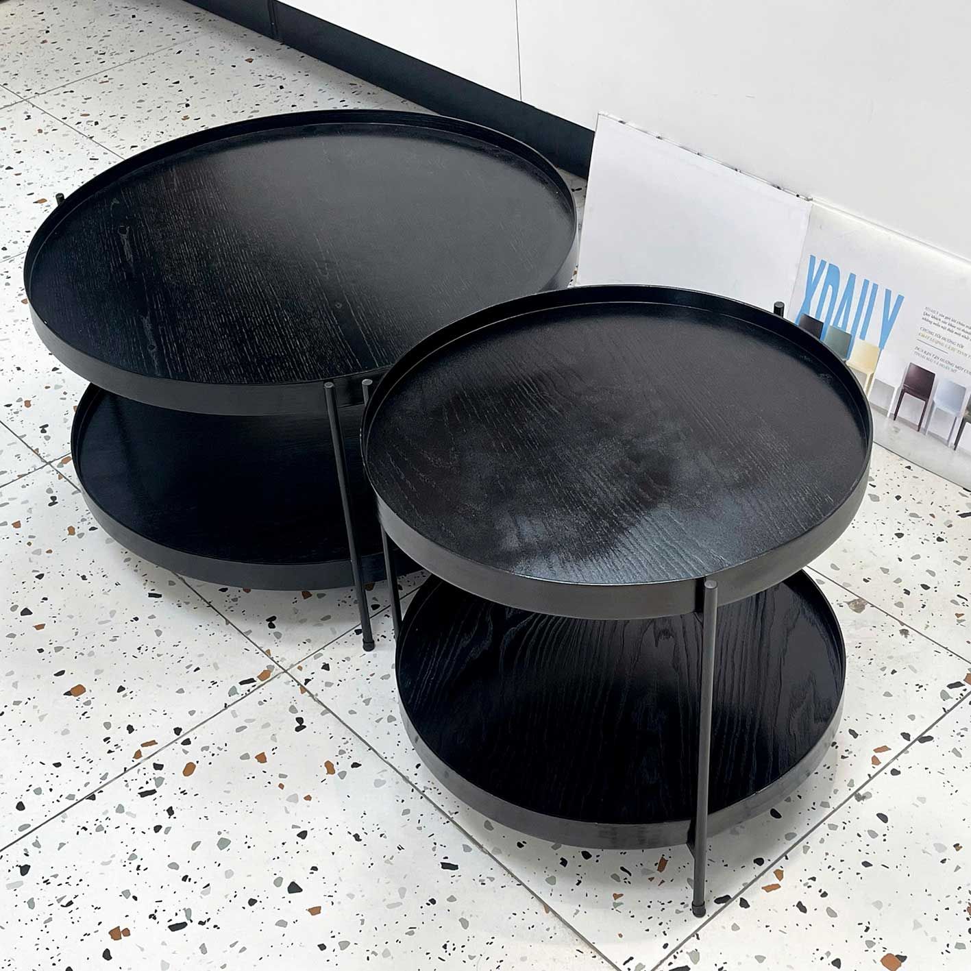 | KT | Bàn to D70*H40 cm. Bàn nhỏ D50*H45 cm. |