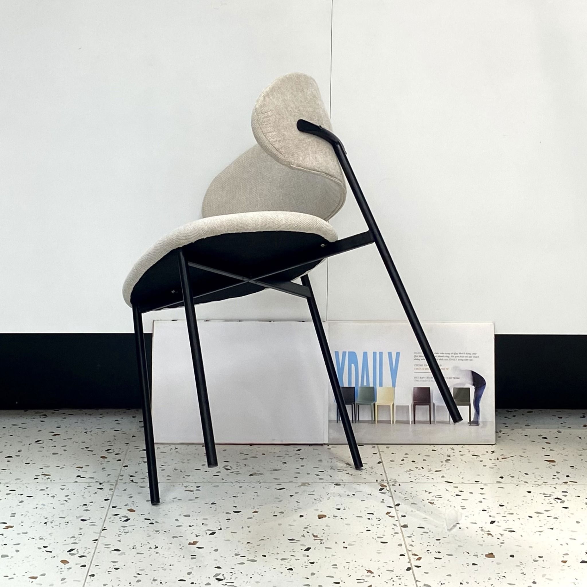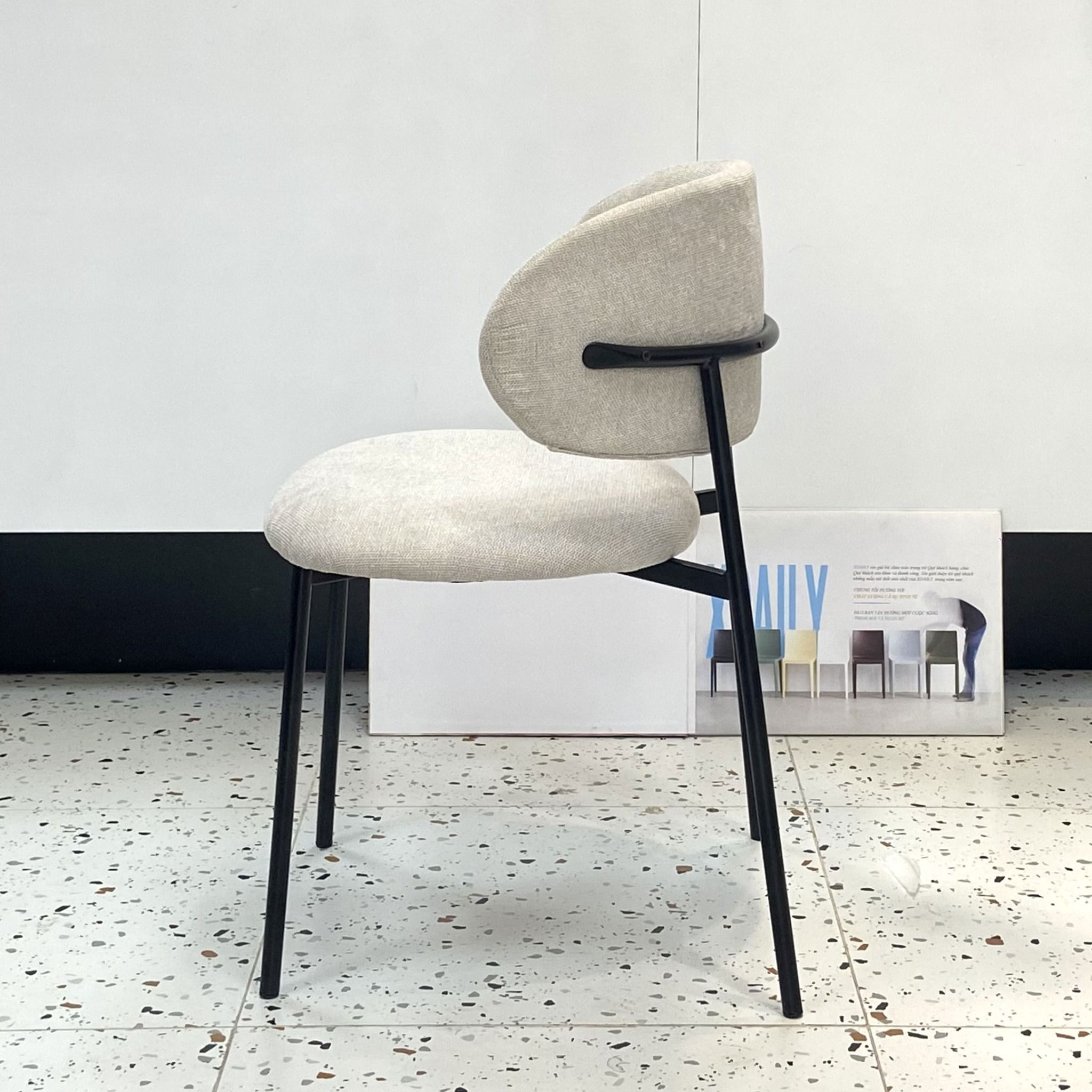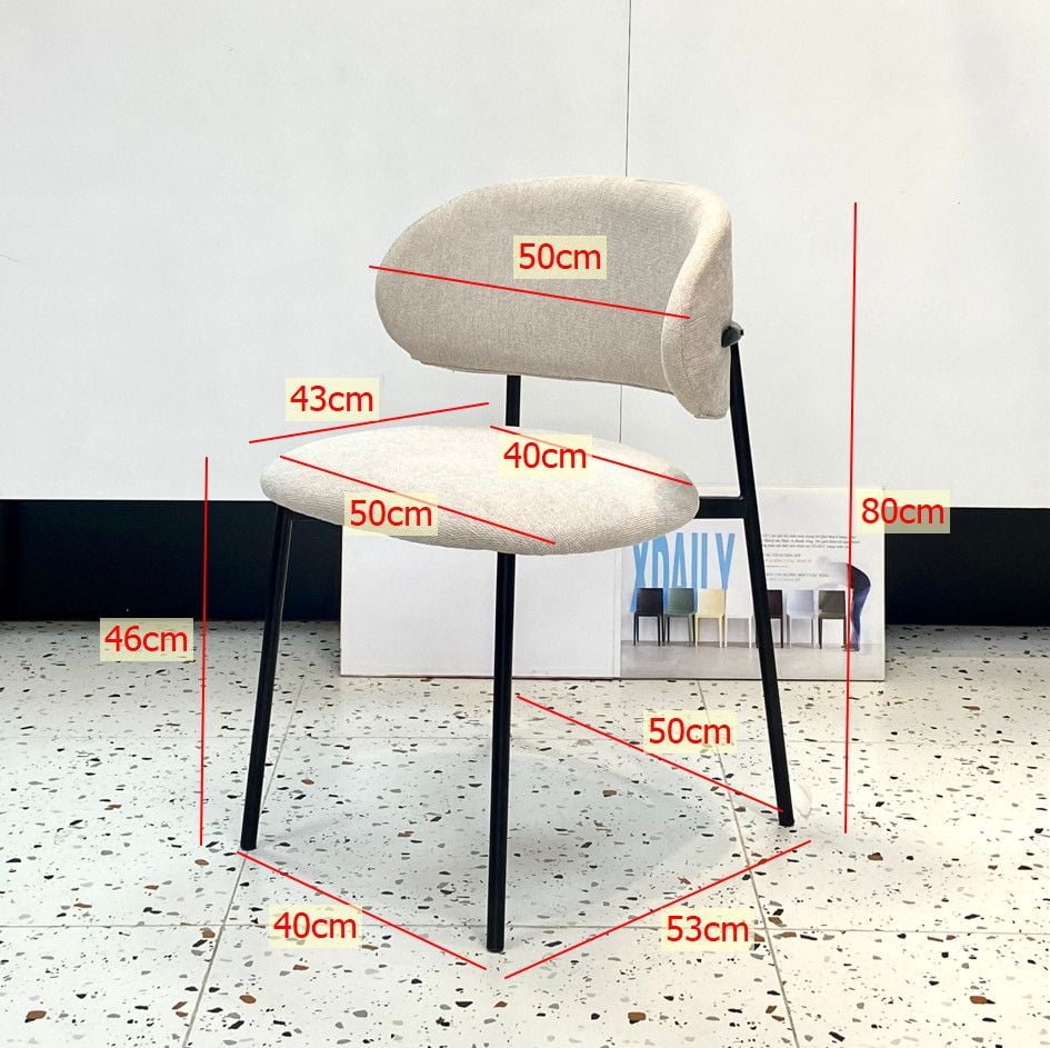 | Chất liệu | Chân sắt sơn tĩnh điện, nệm tựa cốt plywood bọc mút và vải nỉ hoặc da. |