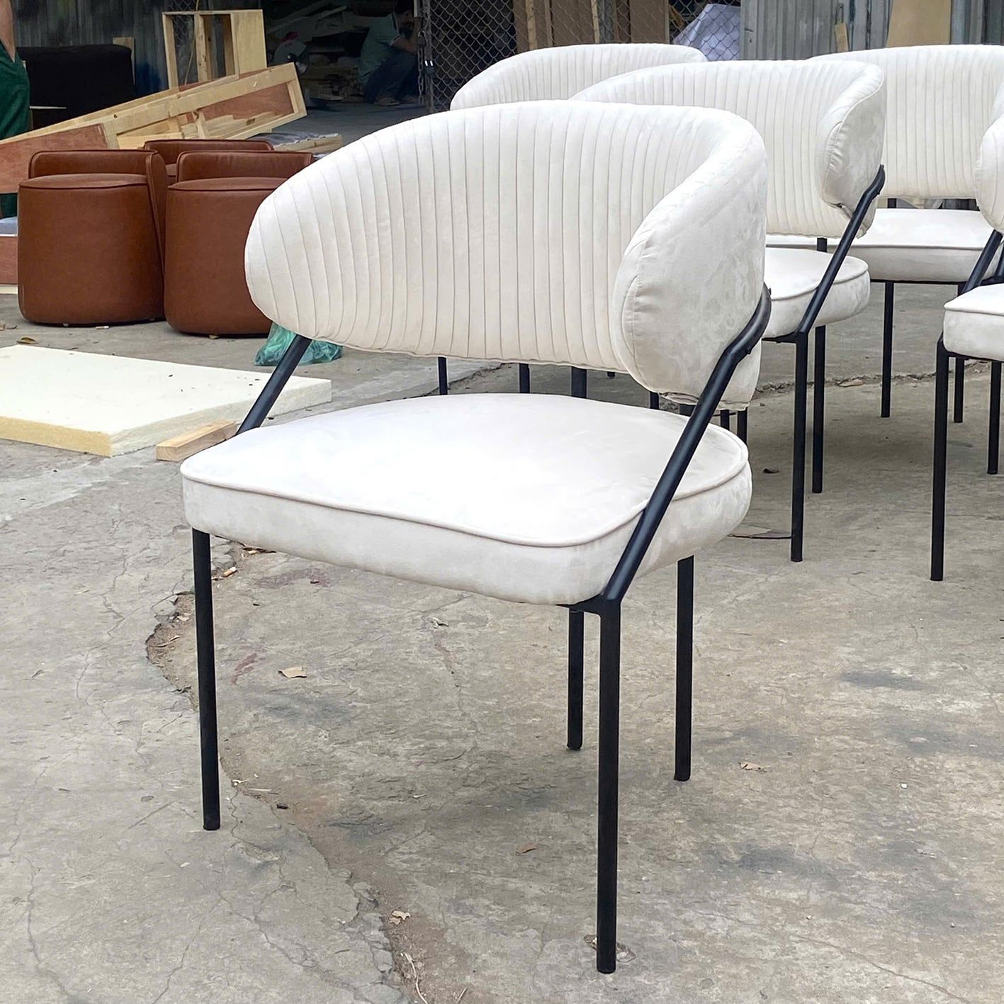 | Chất liệu | Chân sắt sơn tĩnh điện, cốt Plywood, bọc mút Việt Nhật, bọc da hoặc vải. |