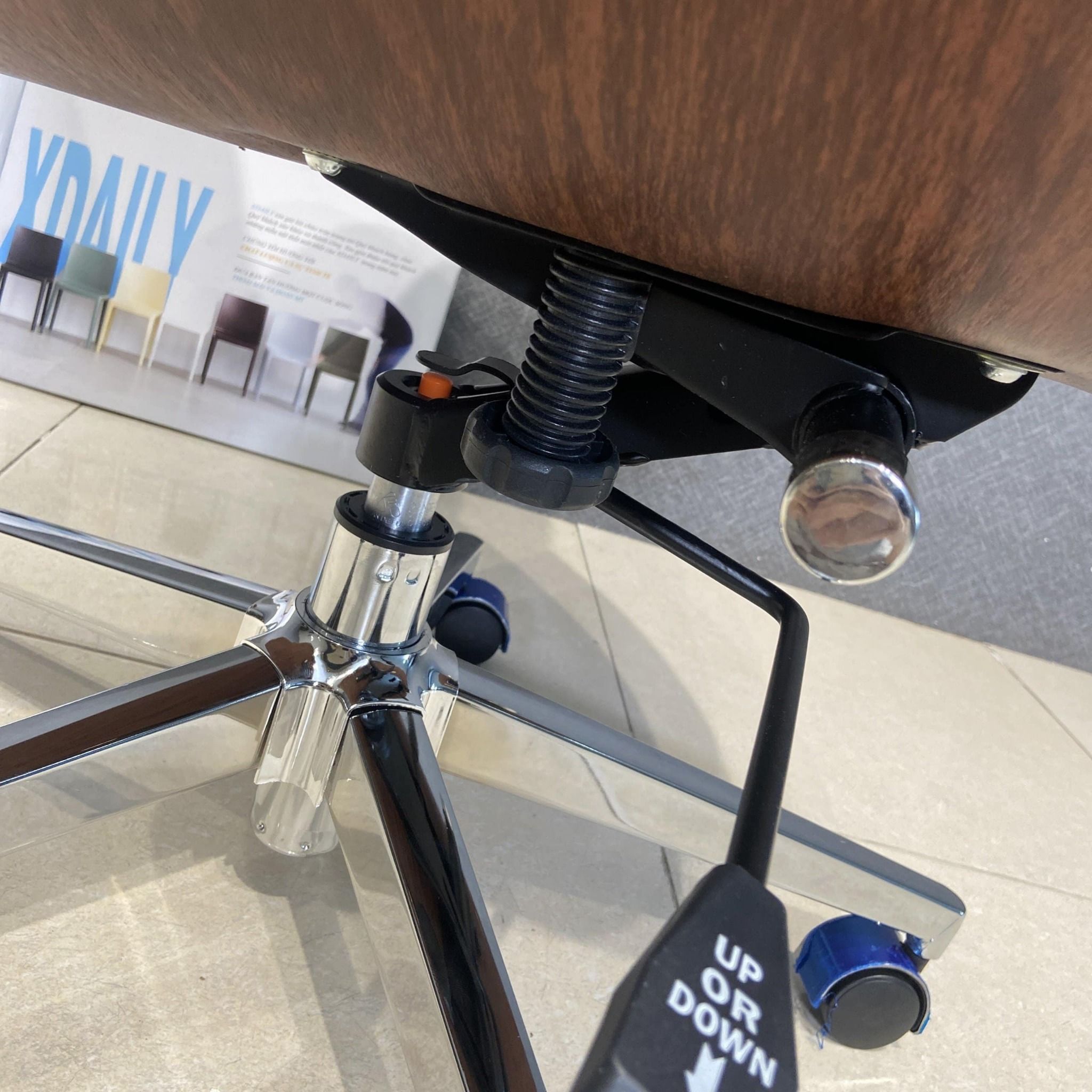 | Chất liệu | Chân thép mạ crom, mặt lưng gỗ Plywoood, nệm bọc da cao cấp |
