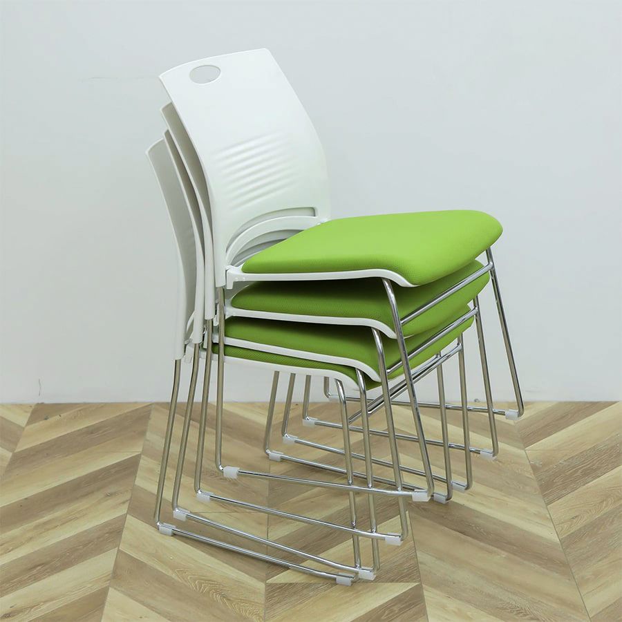Chân ghế được làm bằng sắt mạ Crom, lưng ghế bằng nhựa đúc PP, mặt ngồi được bọc nệm vải với các màu sắc đa dạng phù hợp với nhiều không gian nội thất khác nhau.