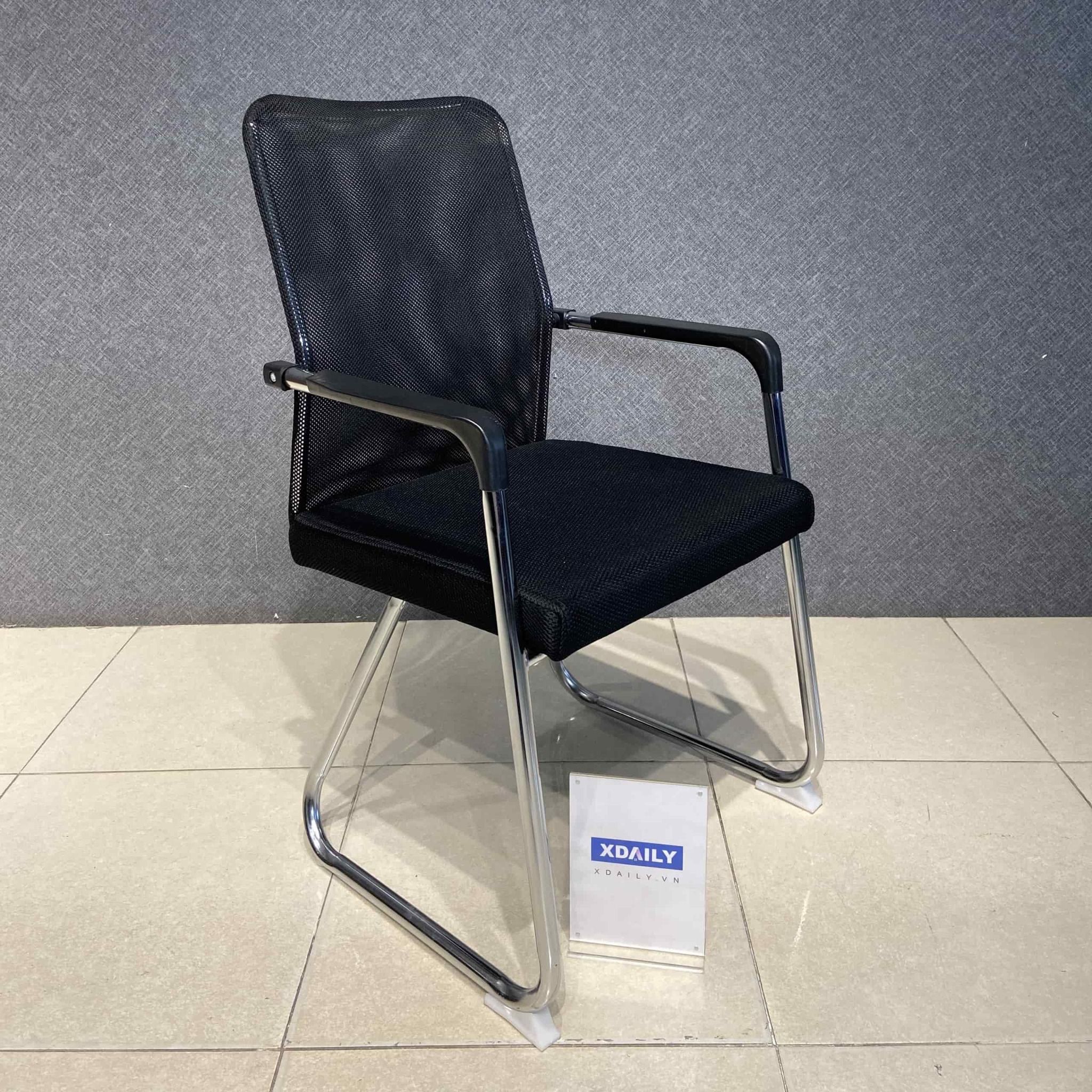 Chất liệu: Khung làm bằng sắt mạ crom, Mặt ghế nệm bọc vải sợi tổng hợp, lưng tựa, đầu vải lưới.