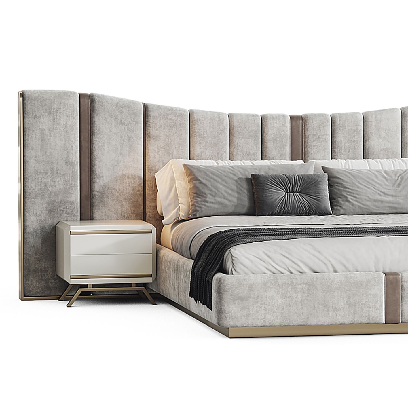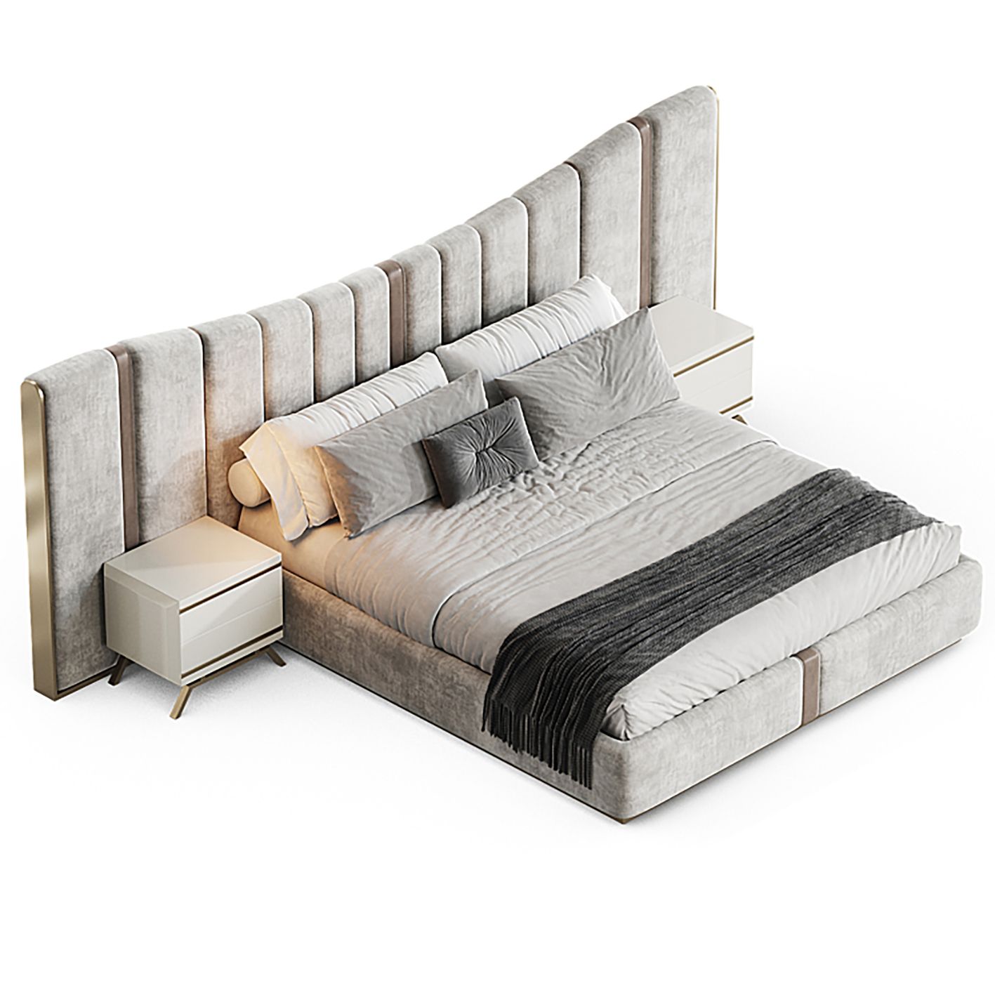 Chân và viền giường bọc hợp kim sơn ánh kim, tăng thêm sự sang trọng và bền bỉ với thời gian.