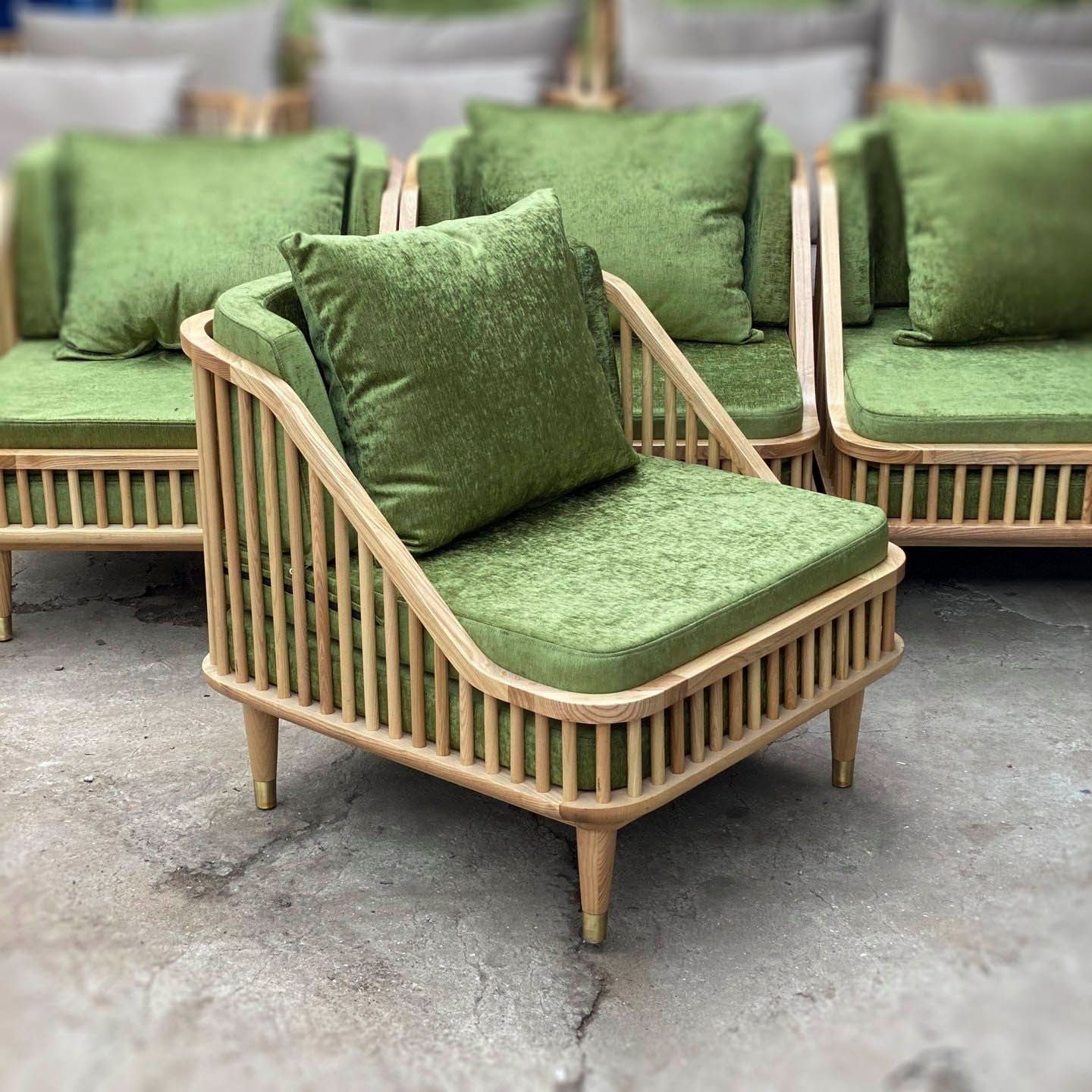 | Chất liệu | Khung gỗ tần bì . Ván ngồi gỗ cao su phủ veneer tần bì . Bọc mút PE,K24,K35,K43 , tùy chọn bọc da hoặc vải nỉ. |